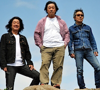 海援隊メンバー:千葉和臣 (Gt)・武田鉄矢 (Vo)・中牟田俊男 (Gt)_※写真左から